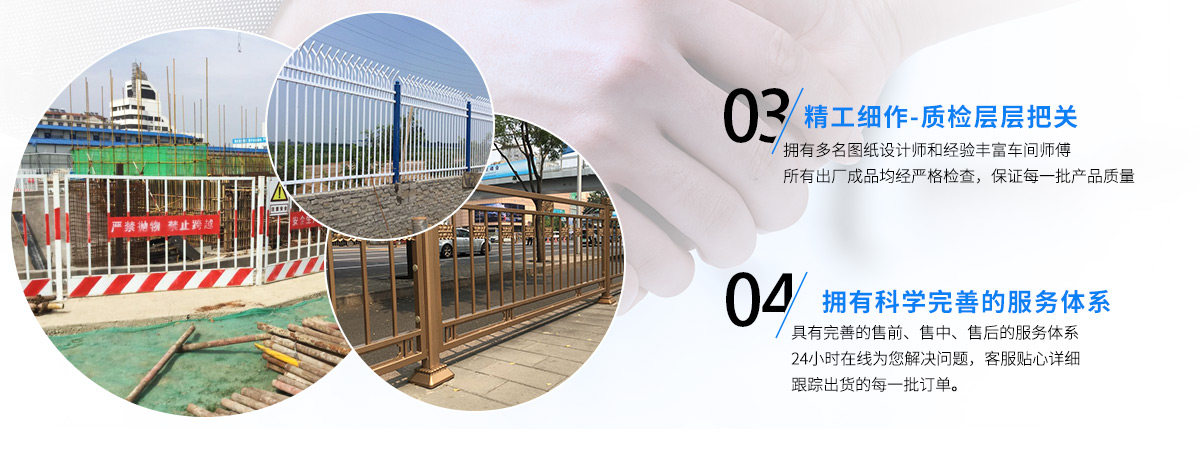 在日新月異的時(shí)代,我們利用技術(shù)優(yōu)勢(shì),以科技倡導(dǎo)未來(lái),更注重內(nèi)在品質(zhì),并根據(jù)客戶不同的需要為客戶設(shè)計(jì),以及滿足客戶的需求。除了良好的產(chǎn)品,我們還將提供完善的售后服務(wù),為用戶解決一切后顧之憂。本公司宗旨以質(zhì)量求生存,以信譽(yù)求發(fā)展,多年來(lái)憑借過(guò)硬的質(zhì)量、良好的信譽(yù)、優(yōu)質(zhì)的服務(wù)、合理的價(jià)格不斷拓展市場(chǎng)。目前生產(chǎn)經(jīng)營(yíng):市政護(hù)欄、草坪護(hù)欄、鐵藝護(hù)欄、鐵路護(hù)欄、臨邊護(hù)欄、高速防眩網(wǎng)等系列產(chǎn)品,不僅暢銷全國(guó)30多個(gè)省市、自治區(qū),還遠(yuǎn)銷到歐美、東南亞、非洲等20多個(gè)地區(qū)。絲牽四海心,網(wǎng)織五洲情。